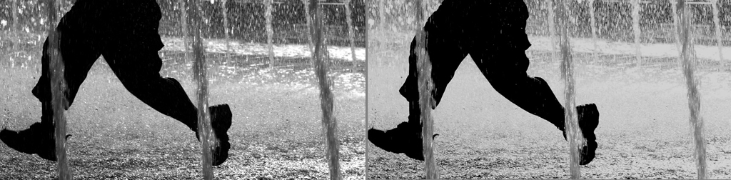U ovom primjeru možete jasno vidjeti da kapljice vode koje udaraju o pod nisu detaljne na JPEG slici. Također, cjelokupnoj slici nedostaje mnogo detalja na osvijetljenim mjestima.